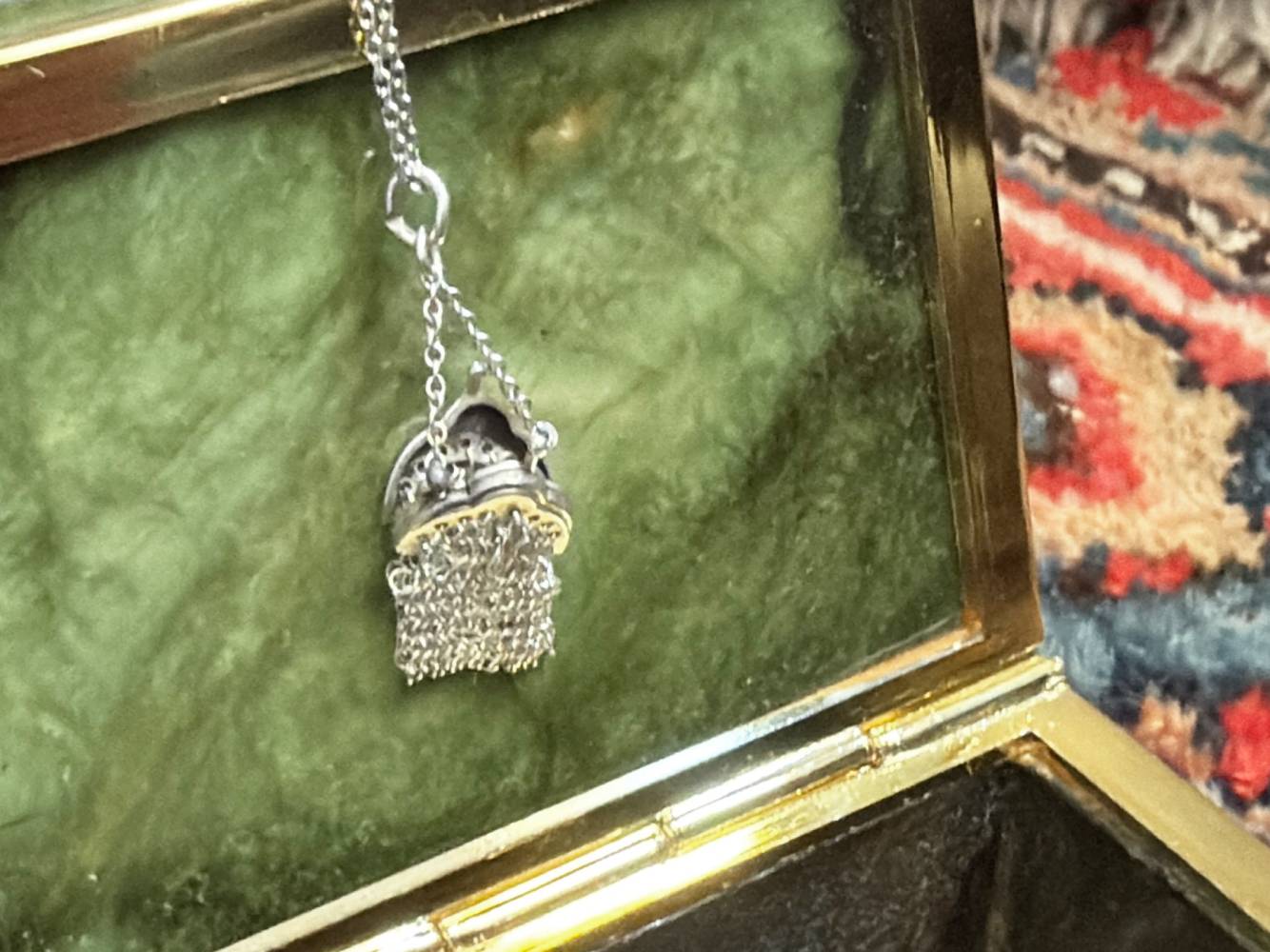 When I saw this charm on instagram I knew I had to have some version of it; it was love at first sight. Since childhood I have been collecting antique Whiting and Davis mesh purses (1920s - 1930s) so this mini purse charm was a must have.